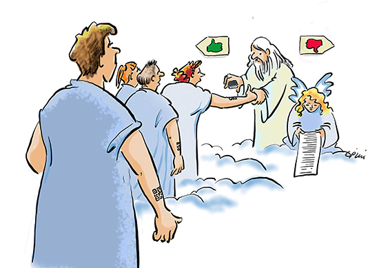 Quick Reader Code ! Heaven gets modern.[:de]Sie können diesen Cartoon kaufen. Auch als Postkarte erhältlich