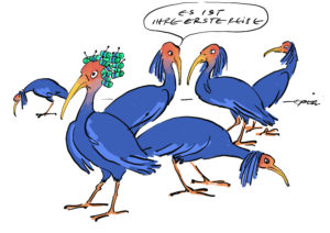 [:en]Cartoon of the week 6.8.2018[:de]Cartoon der Woche 6.08.2018[:] by elena | 06.08.2018 | Cartoon [:en] Birds of passage. The Woodpust, “It is her first voyage*[:de] Zugvögel, die Waldrappe, “Es ist ihre erste Reise!”[:]